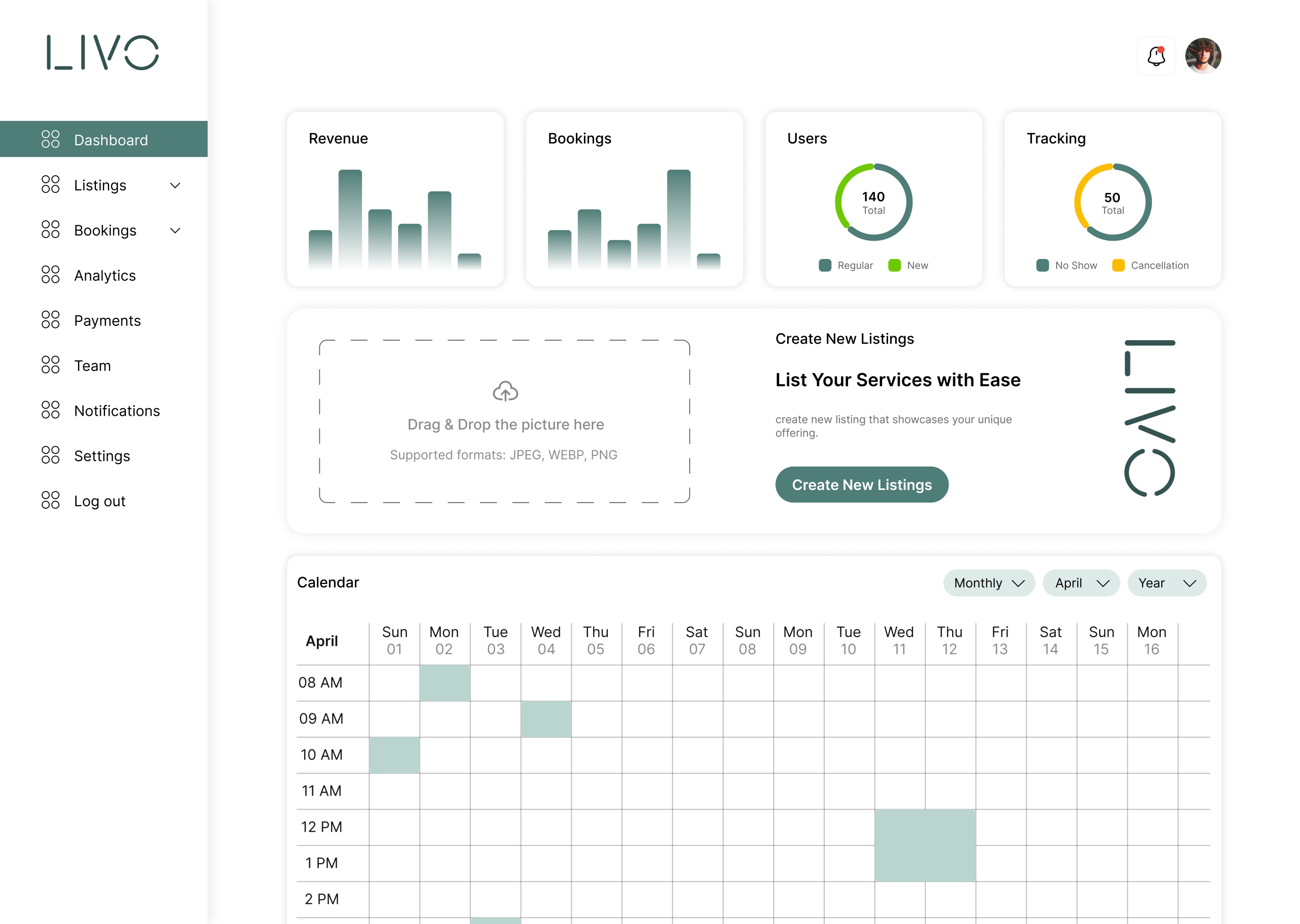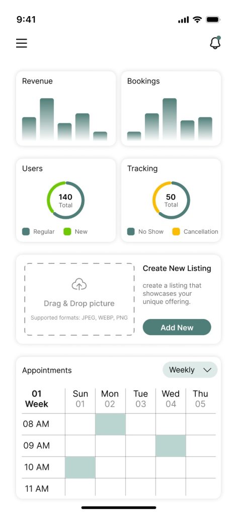 Easily manage your sessions, staff, and availabilities from your dashboard.